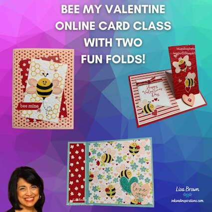 Join us for the Bee My Valentine Online Card Class, a delightful journey into the world of vibrant colors, charming designs, and  two unique fun folds.Â